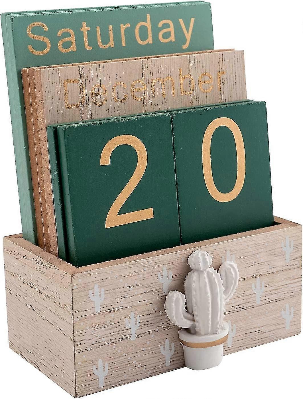 Perpetual Calendar, Wooden Calendar For Home Office Desk Accessories Vintage Wood Block Calendar(green)