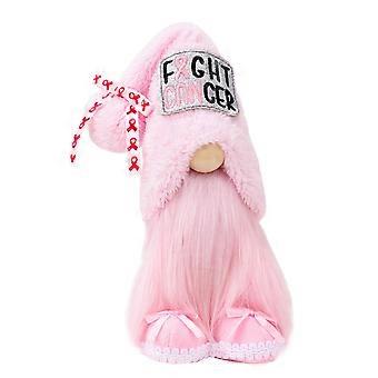 Pink Fight Cancers Gnomes Plushie,Pink Breast Cancers Awareness Gnomes with Ribbon,Stuffed Swedish Tomte for Women