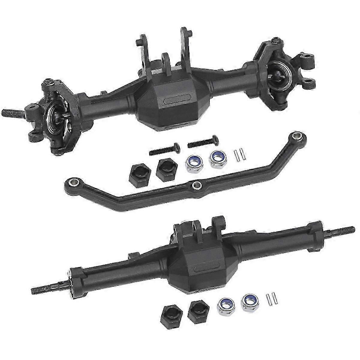 [Compatibility]: RC car accessories are made of plastic, suitable for 1/18 trx4m models, and the compatibility is very high. [Features]: The upgrade improves the handling and durability of the car, providing unparalleled driving versatility [Quality]: High-quality accessories that help improve your car experience. [Upgrade Accessories]: Great accessories to upgrade and modify your model car, highly detailed simulation, derived from real car design, increase the authenticity of RC cars. [Easy to Install]: Easy to install, perfect for replacing old or damaged parts. Easy to use, easy to replace Installation position: Front + Rear Colour:Black Material:Plastic+Metal Package Contents: 1x RC car Axle kit Only the above package content, other products are not included. Note: Light reflection and different displays may cause the color of the item in the picture a little different from the real thing. The measurement allowed error is +/- 1-3cm.