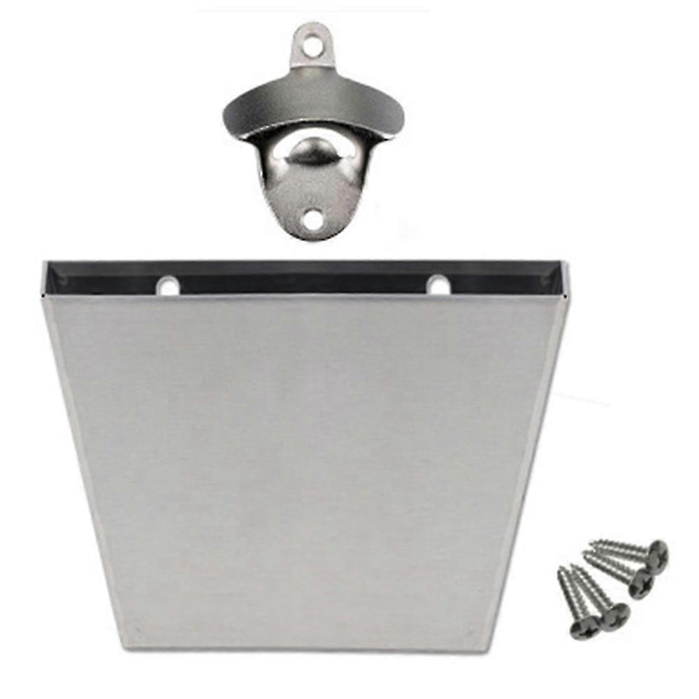 Wall Mount Bottle Opener With Steel Cap Catcher Bin Holds Upto 75 Caps