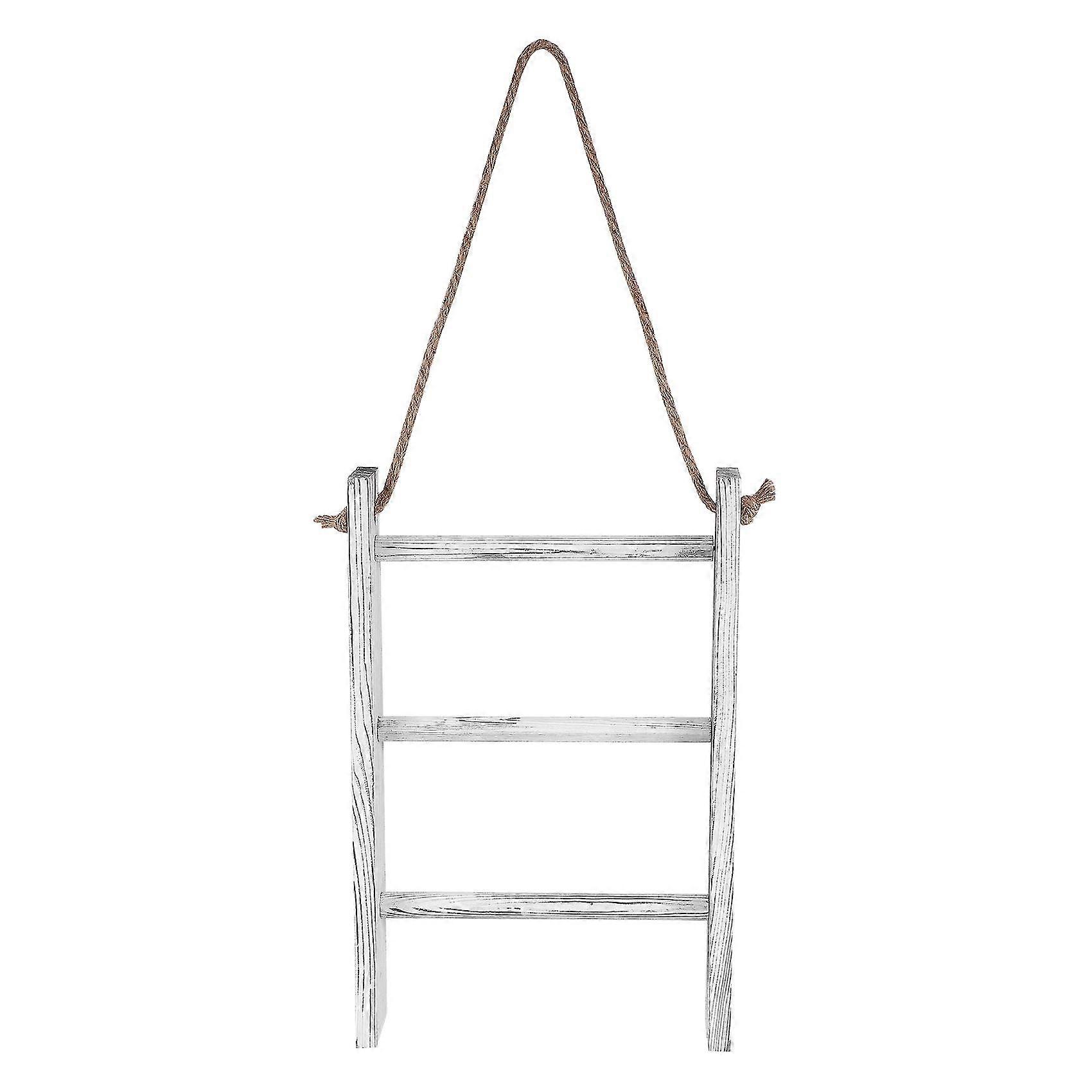 Wall-hanging Towel Ladder Rustic Whitewashed Wood Countertop Ladder Farmhouse Decor Towels Rack With Adjustable Rope