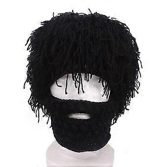 Novelty Hat Winter Handmade Wig Beard Hats Crochet Mustache Knit Christmas Black Funny Party Caps Unisex Wool Tassel Ski Mask Bonnet