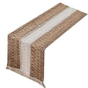 Table Flag Mat Linen Cotton Stitching Two-color Woven Tassel Decoration Wedding Festival Party Kitchen Home Ornaments