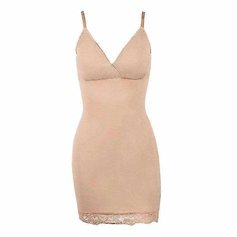 Body Shaper Women Sexy V Neck Slip Dress With Removable Cup Lace Hem Mini Dresses Skinny Design Tube Slips Shapewear Waist Curve Beige