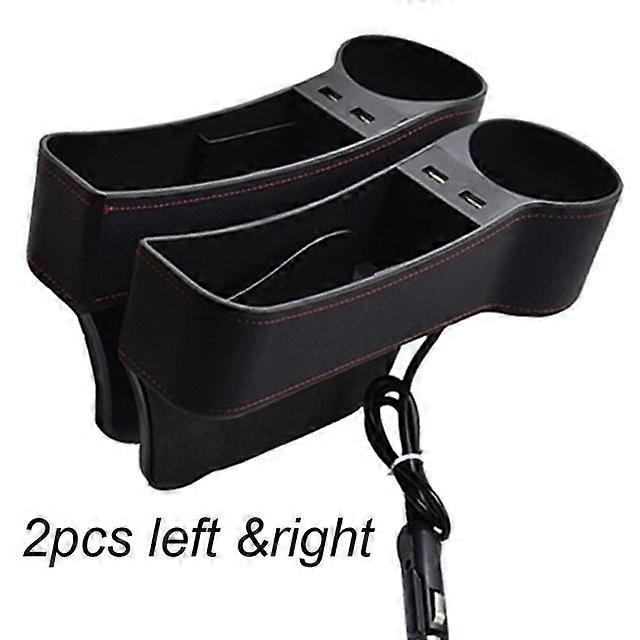 Leather Car Seat Gap Filler USB Charging Console Side Organizer with Cup Holder Storage Box for Cellphone Wallet Card Key