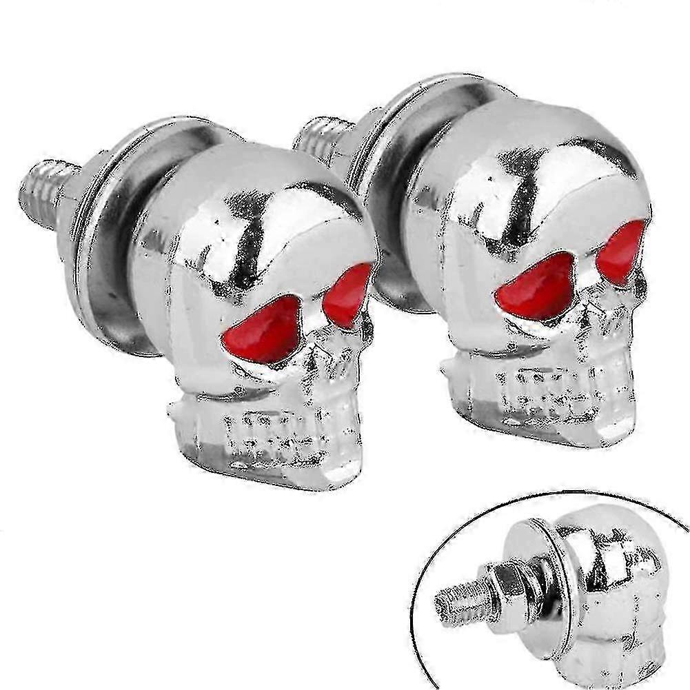 Skull License Plate Frame Bolts Screws Fastener Cap Motorcycle Car Truck Auto2pcs-silver