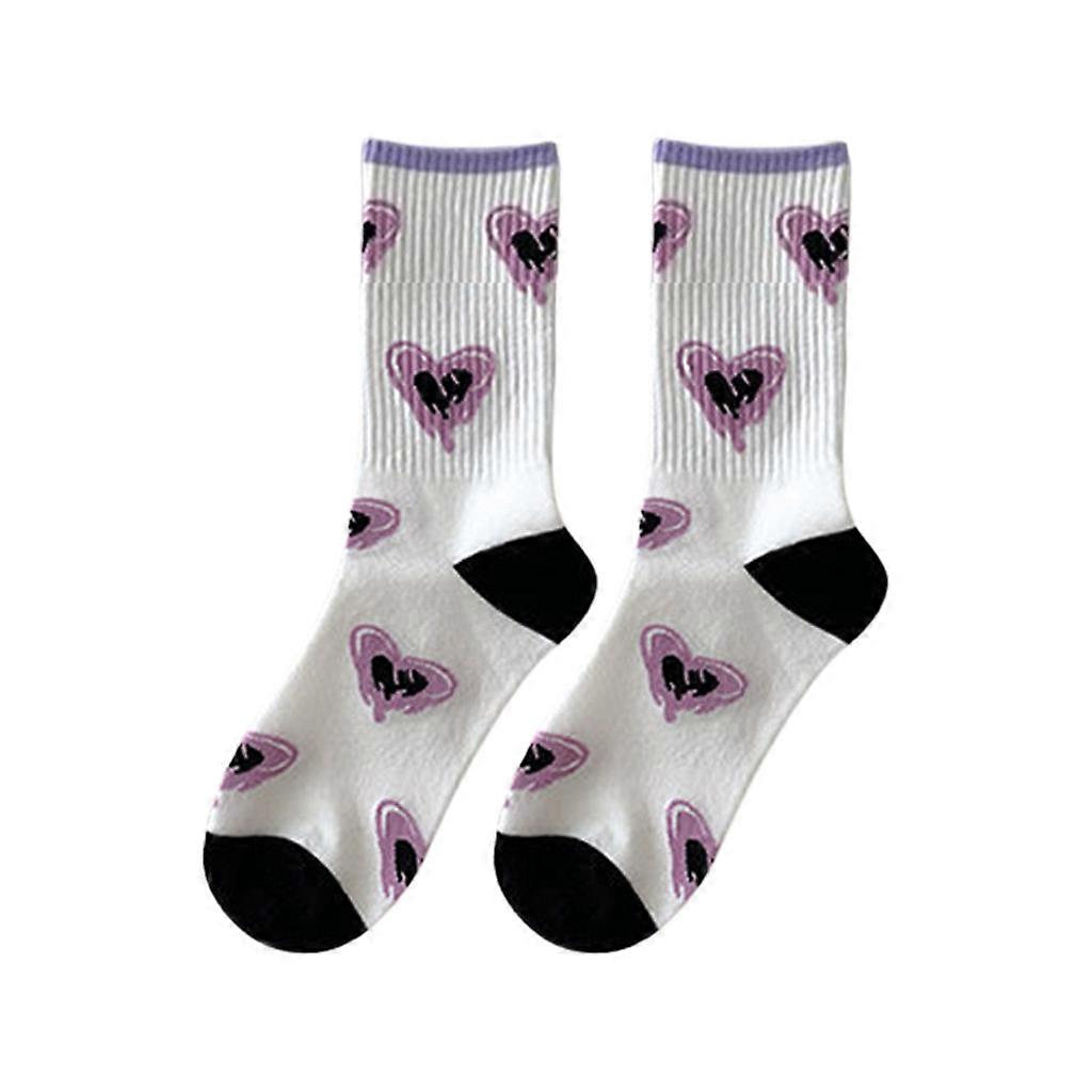 Purple Series Socks Female Middle Tube Sock Cute Heart Student Long Socks