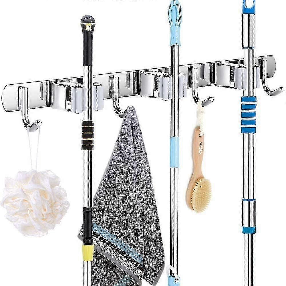 Wall Mounted Stainless Steel Mop Mop Holder Broom Holder With 3 Clips And 4 Hooks Wall Mounted Storage Rack Organizer For Kitchen Garden-wy008-grey