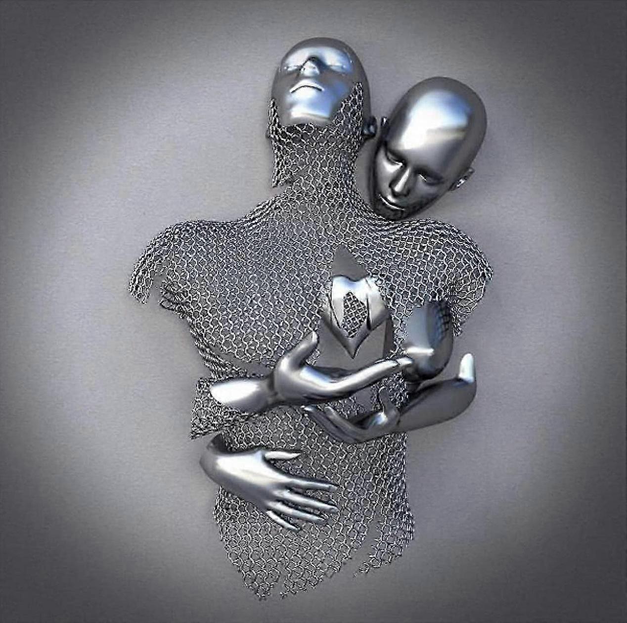 Love Heart Gray-3d Art Wall Metal Figure Sculpture Couple Hanging Painting For Home_l28