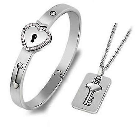 Love Heart Lock Bracelet And Key Necklace Set For Couples Jewelry, Anniversary Gift You Hold The Key To My Heart