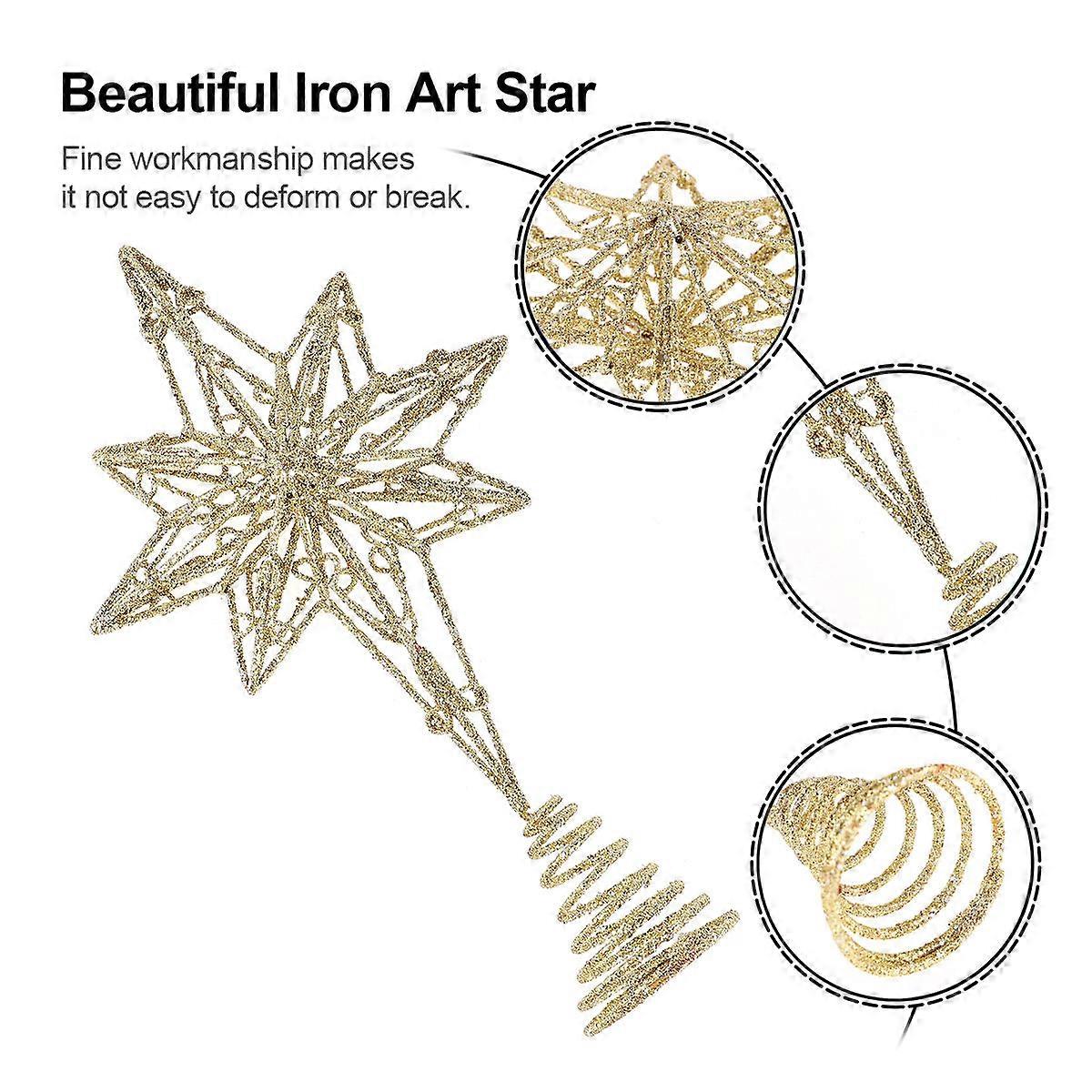 Golden Iron Octagonal Christmas Tree Star Topper Decoration for Home Festival Party Tabletop Trees Easy to Use