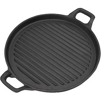 Cast Iron Grill Double Handle Ribbed Round Cast Iron Frying Pan Convenient Quick For Gas Stovetop (24cm / 9.4in)