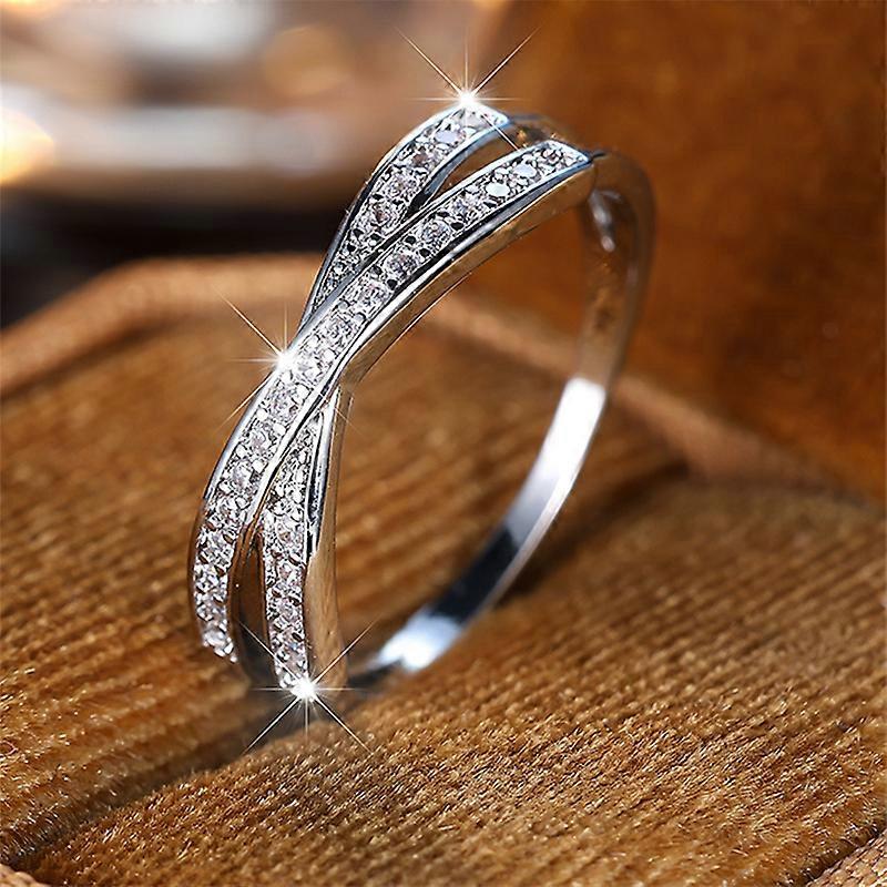 Minimalist Stacking Crossed Wedding Bands Black Gold Silver Color Blue Red Green Stone White Zircon Thin Rings For Women Jewelry