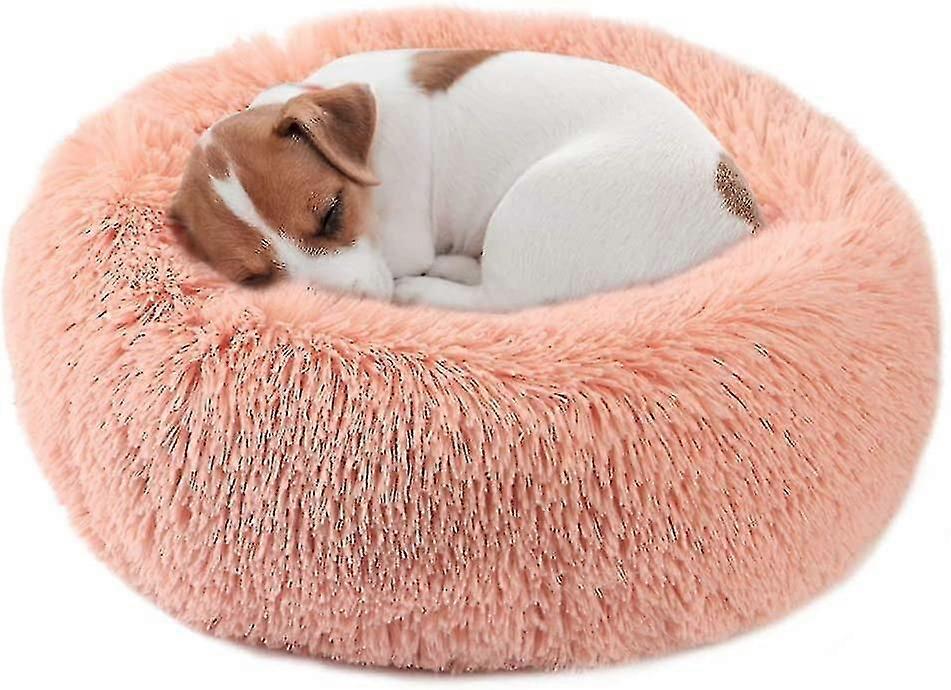SOFT and WARM: This dog domut cuddler made of plush for the surface,comfortable and soft,feels smooth,take care of the skin of your pets.And with oxford non-slip bottom,non-toxic, environmentally friendly, non-slip and mold proof.In the winter, warm Cozy nesting dog bed provide your pet a cozy place to stay. SUPPORTS DEEP SLEEP: Thanks to its round shape, our fluffy and luxurious donut shaped. Donut Cuddler puppy bed is ideal for pets who love to curl up,can relieve pet's anxiety, let pet feel more secure The raised rim creates a sense of security and provides head and neck support, while the super-soft filling offers joint and muscle pain relief,provides more comfortable deep sleep. SELF-WARMING and EASY TO CLEAN: Fluffy Luxe Soft Plush Round Cat Cushion Bed, comfortable \u0026 self-warming,keeps your dogs a good time to sleep in cold winter.Every bed is safe in the washing machine (Machine wash, gentle cycle. Tumble dry, low heat).In order to keep fluffy, we suggest that better to hand wash. NOTE: It takes two hours to shake it by hand to make it as fluffy as the picture. It takes about a day to be completely fluffy in nature state. NON-SLIP \u0026 WATERPROOF BOTTOM: The non-skid bottom keeps pet bed in place, not easy to slip and pill. And the bottom is waterproof and mildew proof, you can put it anywhere you want. Suitable for Small And Medium Dogs And Cats, not suitable for large pets, dogs with excessive teething or powerful chewers. Material: Plush Color: Dark Grey, Pink, Colorful, Green(option) Size Guide:40cm bed suitable for pets up to 2.5kg 50cm bed suitable for pets up to 5kg60cm bed suitable for pets up to 9kg Package List: 1 x Plush Pet Bed