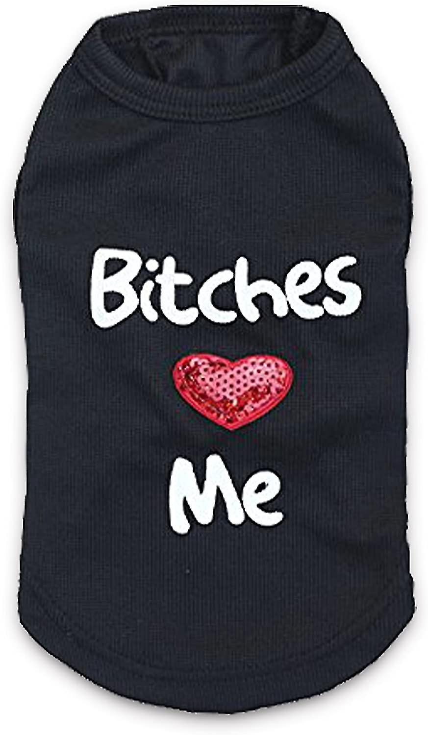 Pet Dog Clothes Dog Shirts Bitches Love Me Dogs T Shirts Cat Clothes Puppy, Size S, Black