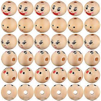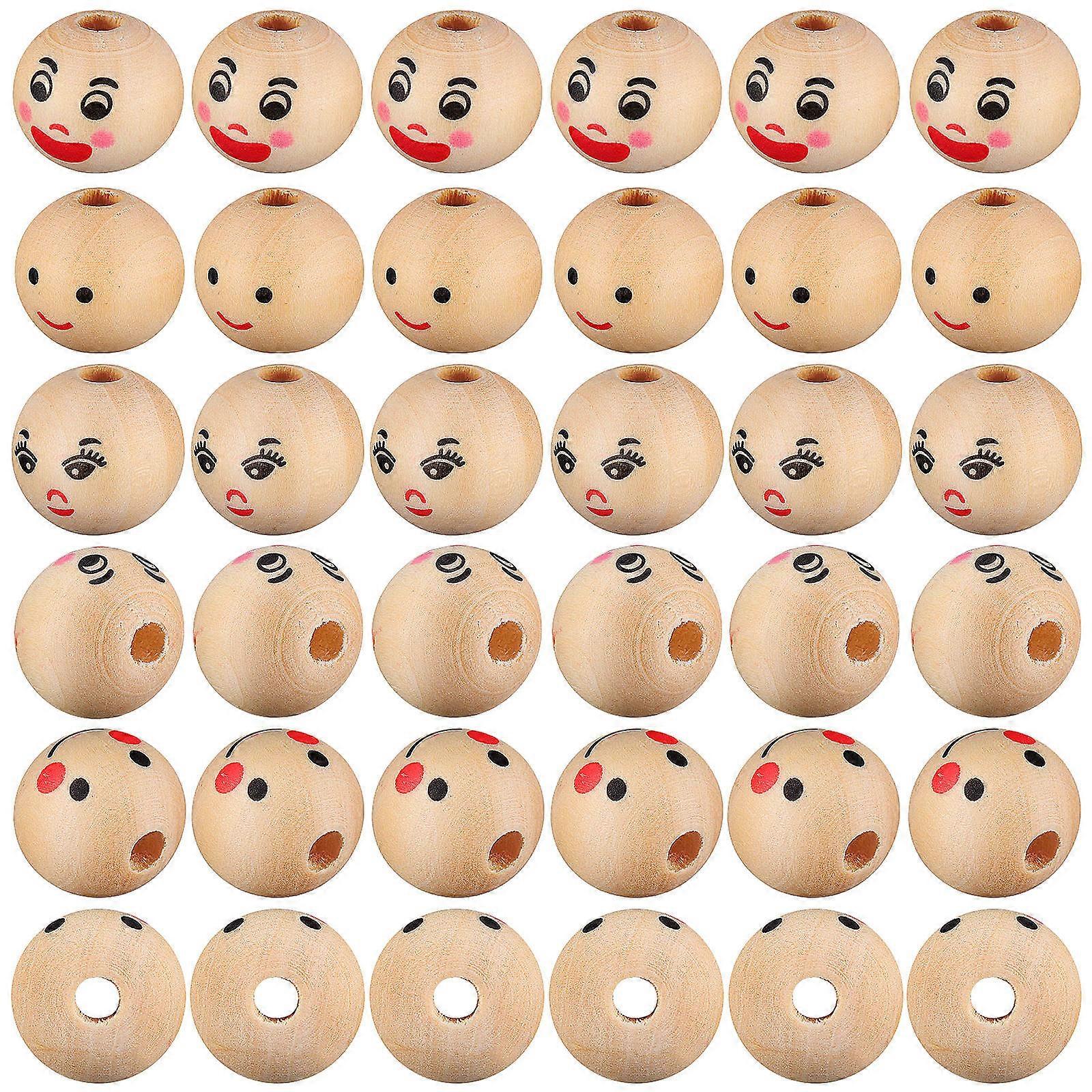 Wood Beads for Crafts with Adorable Smile Faces Assorted Color Wood Grain Natural Beauty 100pcs