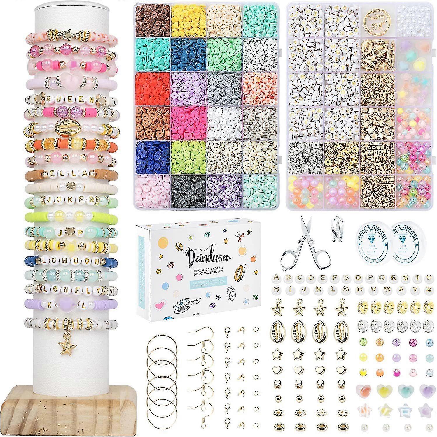 Beads For Threading, Set Of Over 6200 Beads, Polymer Clay Beads For 6mm Bracelets, Bracelet Jewellery Making Set, Gift For Rings And Necklaces