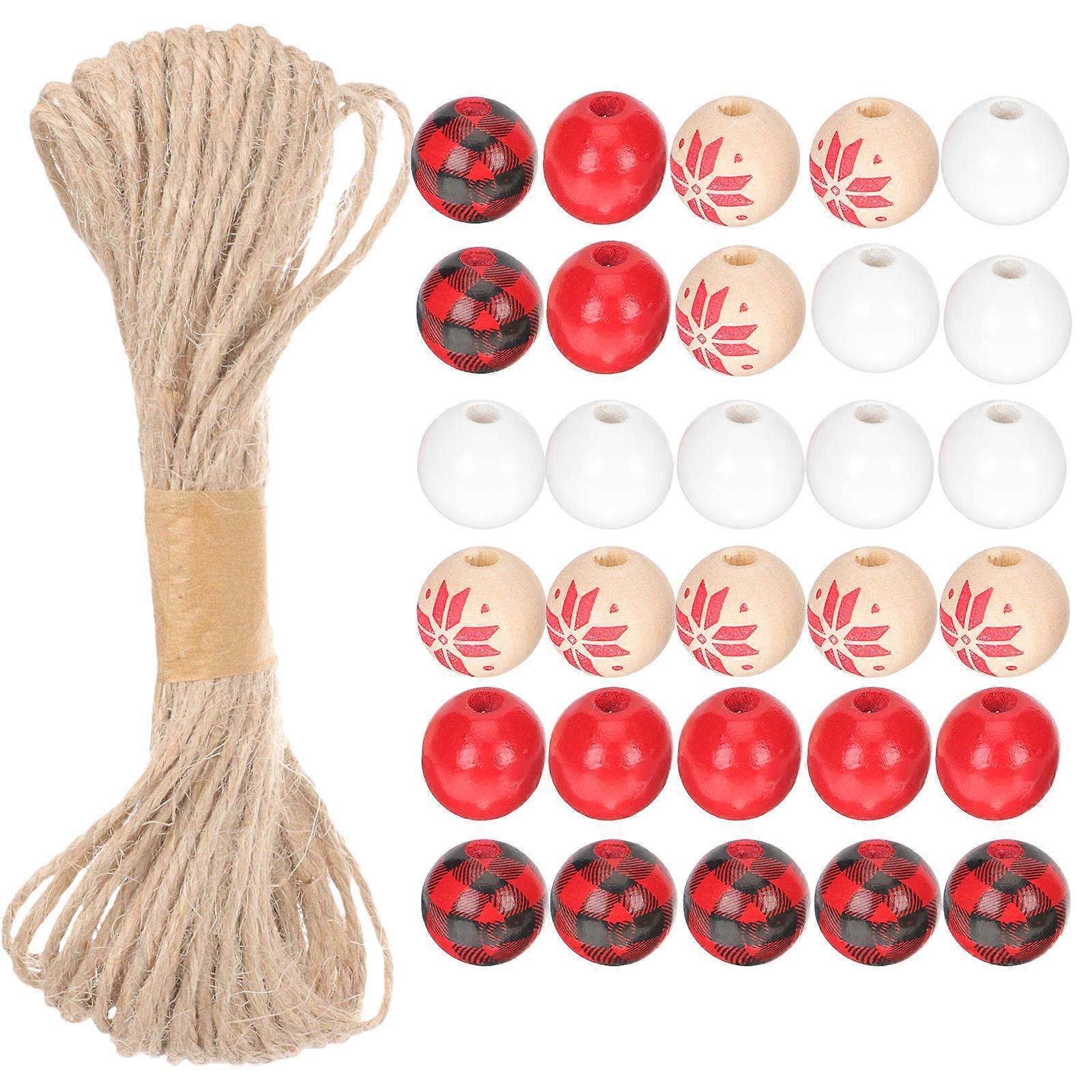 Beads For Jewelry Making Christmas Wooden Beads With Hemp Rope Diy Crafts Accessories 1.7x1.7CM Round Natural Wood Color Craft Enthusiasts 1Set