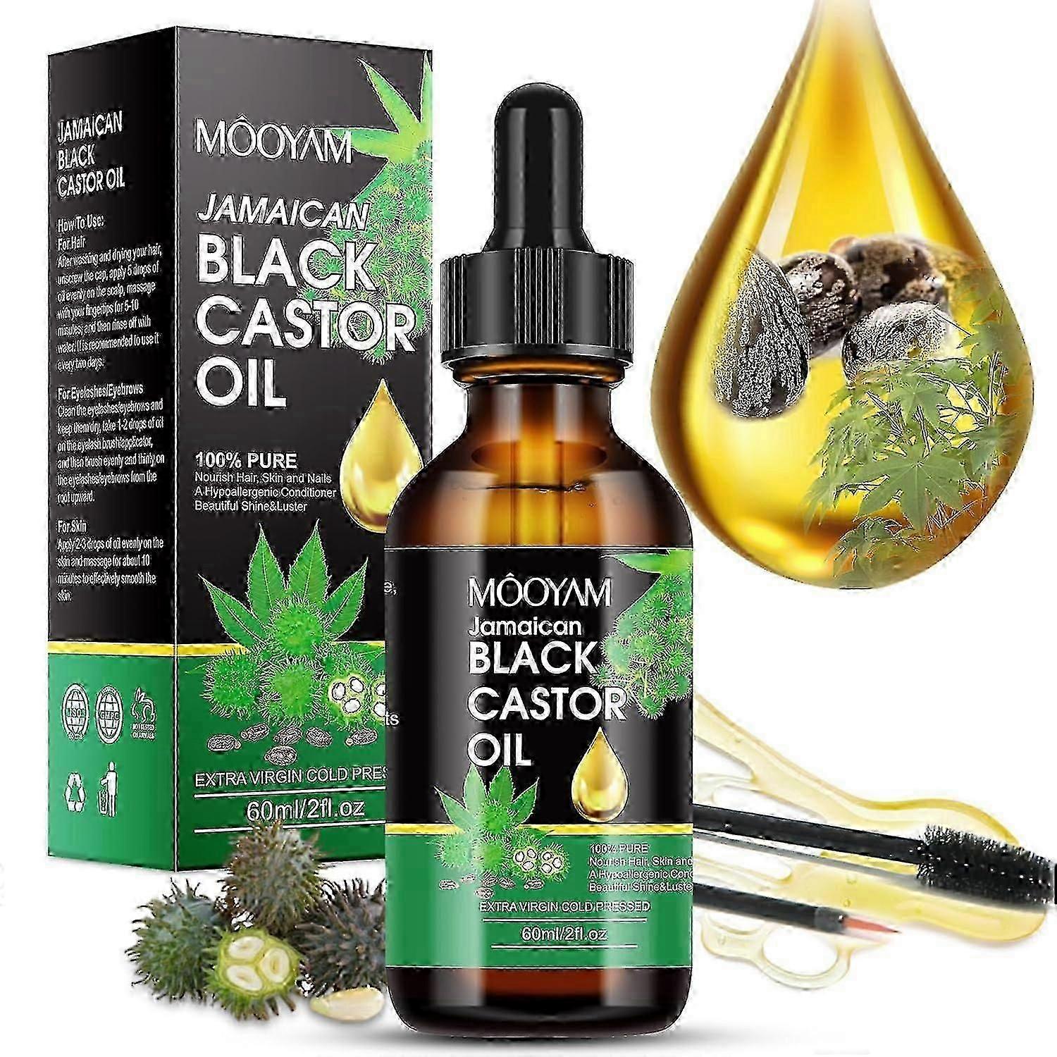 Jamaican Black Castor 100% Pure and Natural Castor Oil Organic Cold Pressed Unrefined Glass Bottle, Castor Oil for Face Hair Growth Eyelashes Eyebrow