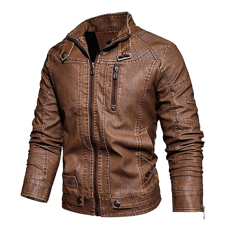 Autumn Winter Fleece Motorcycle Pu Leahter Jacket Men Stand Collar Cas