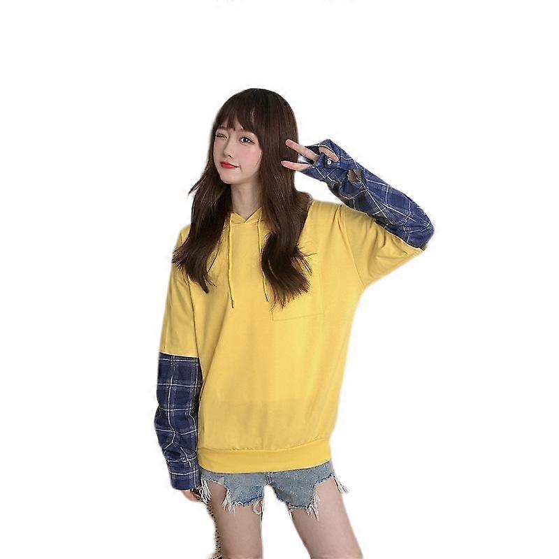 Autumn And Winter Long Sleeves, Hooded Sweatshirt, Thin Blouse, Plaid Loose