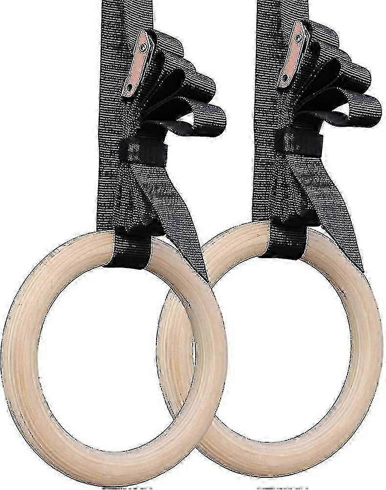 Wood Gymnastic Rings With Adjustable Straps For Cross-training Workouts Gymnastics And Conditioning