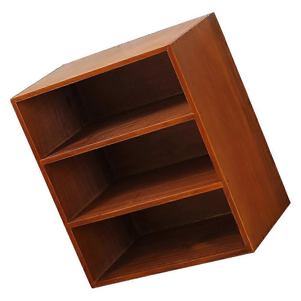 Solid Wood Desktop Organizer Shelf Multi Functional Bookshelf Cup Holder 3 Tier Storage Rack for Home Office Book Cosmetic Display Natural Wood
