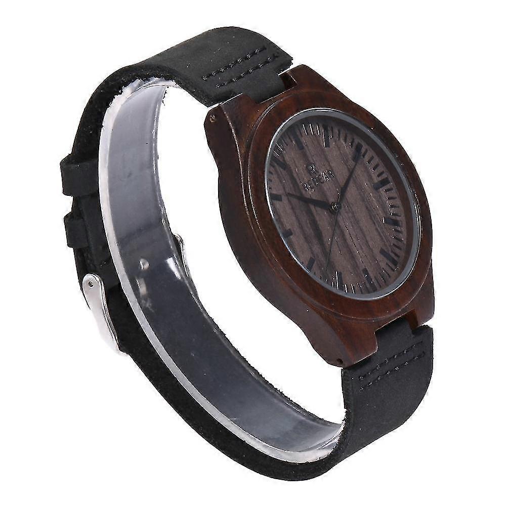 Natural Wood Leather Strap Watch Quartz Wrist Watch With Gift Box