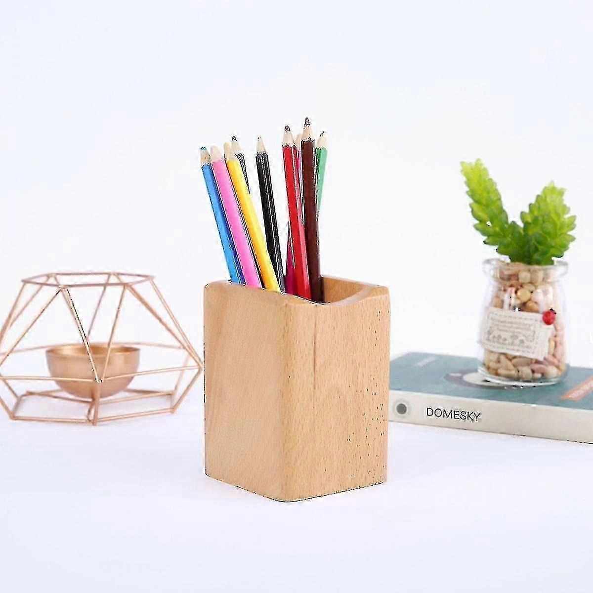 Wood Desk Pen Pencil Holder Stand Multi Purpose Use Pencil Cup Pot Desk Organizer