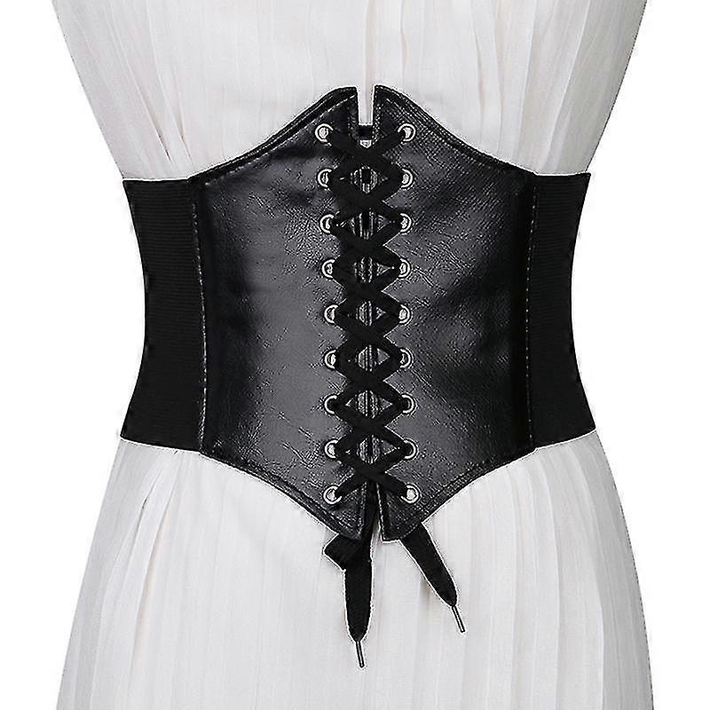 Lace-up Cinch Belt Tied Corset Elastic Waist Belt, Womens Leather Buckle Underbust Corset Belt Bustier