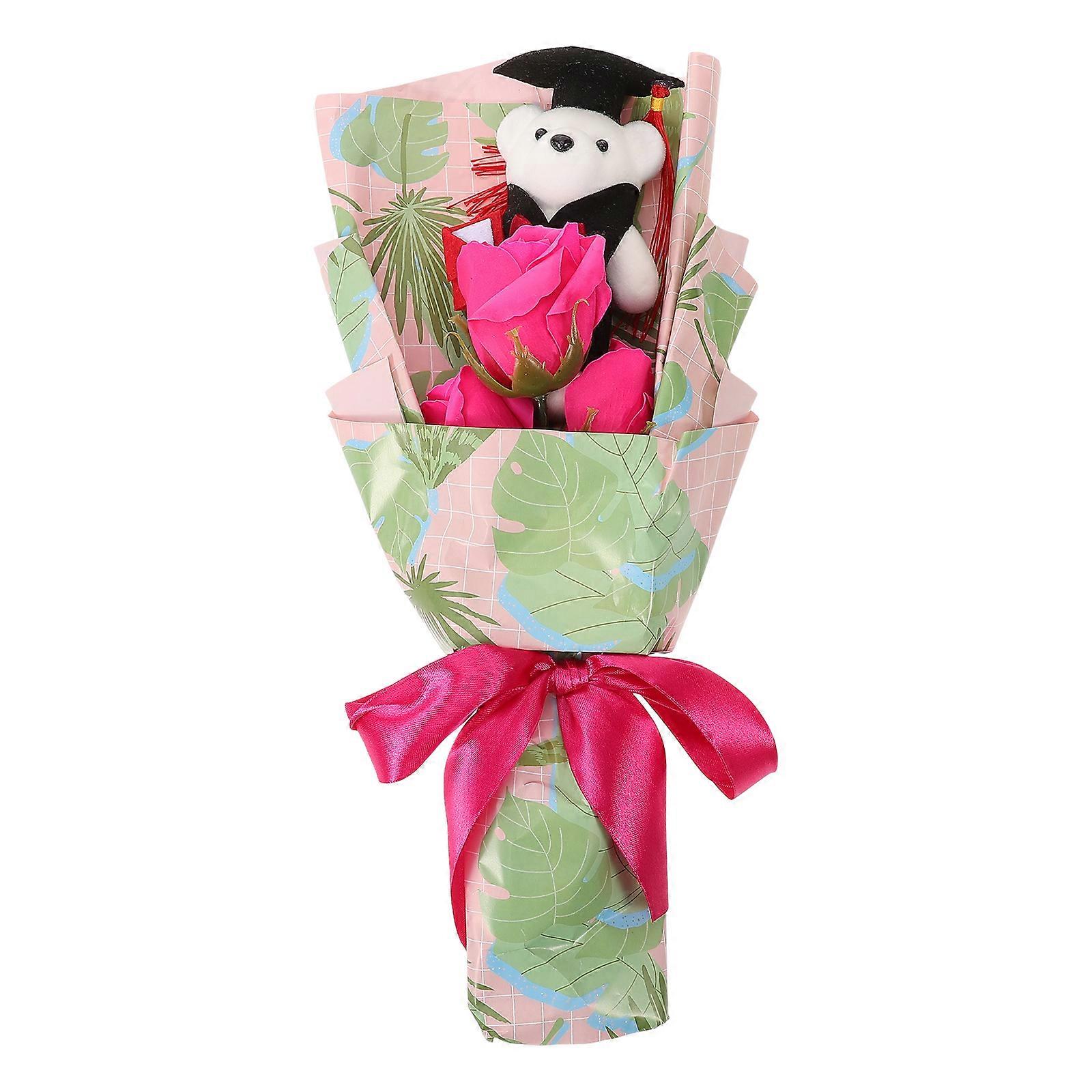 Bear Flower Bouquet Lovely Graduation Themed Floral Arrangement For Decoration Rosy 37.00X17.00X8.00CM 1Set