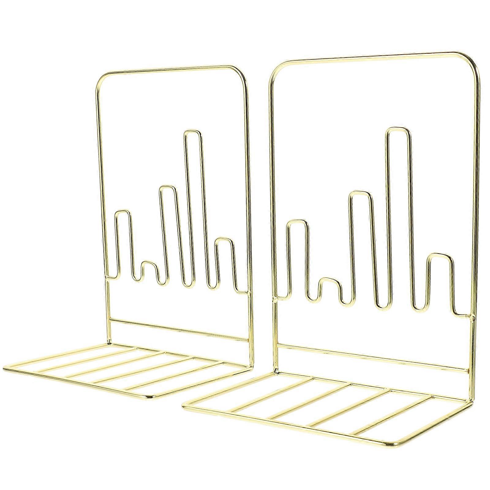 Decorative Bookends Metal Geometry Shaped Desktop Book Stands Golden 2Pcs