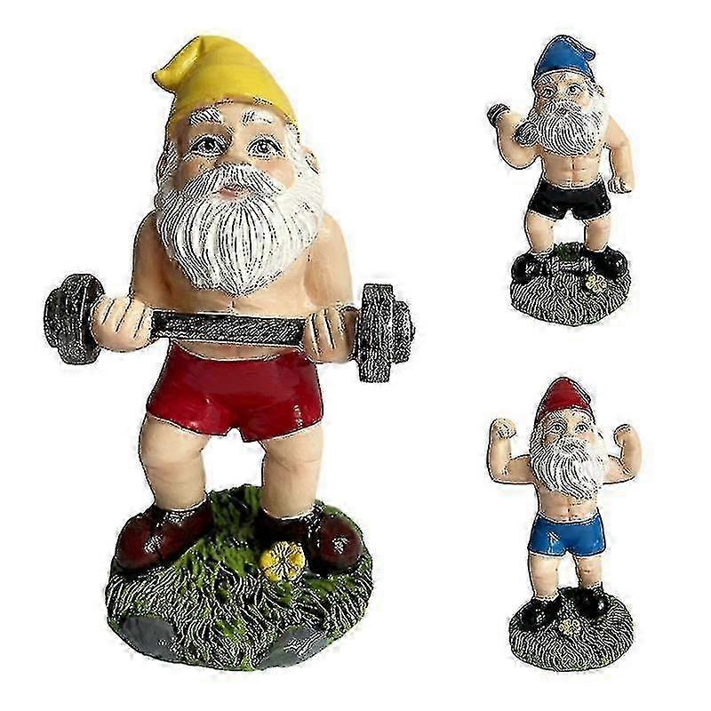 Dumbbell Weightlifting Gnome Sculpture Garden Dwarf Statue Gnome Figurine Decoration With Vivid Expr