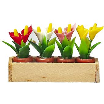 الدمى منزل نافذة مربع مع 4 أواني من الزنابق مصغرة حديقة التبعي 1:12