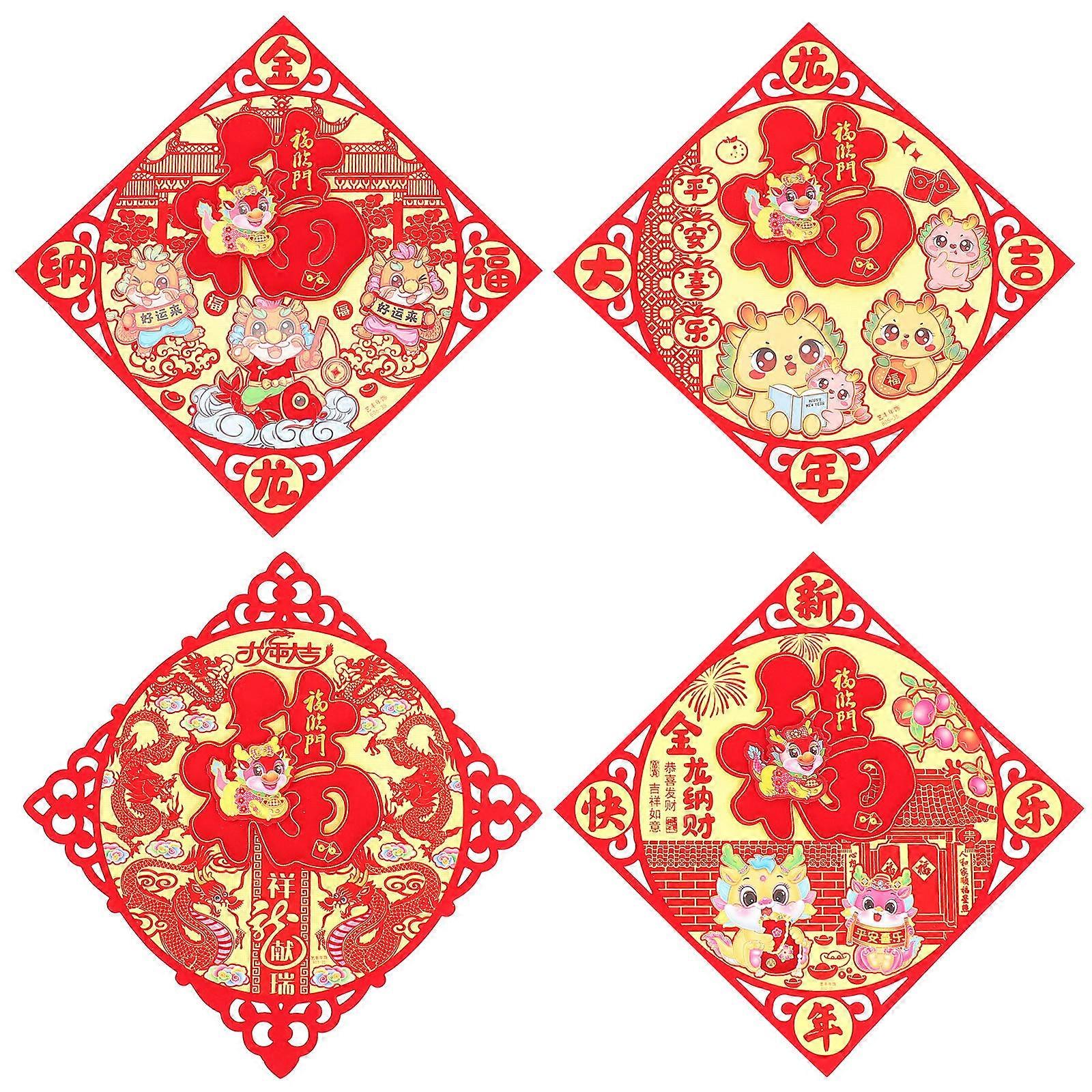 Chinese New Year Decoration Fu Character Door Stickers Assorted Color for Doors and Windows 4Pcs