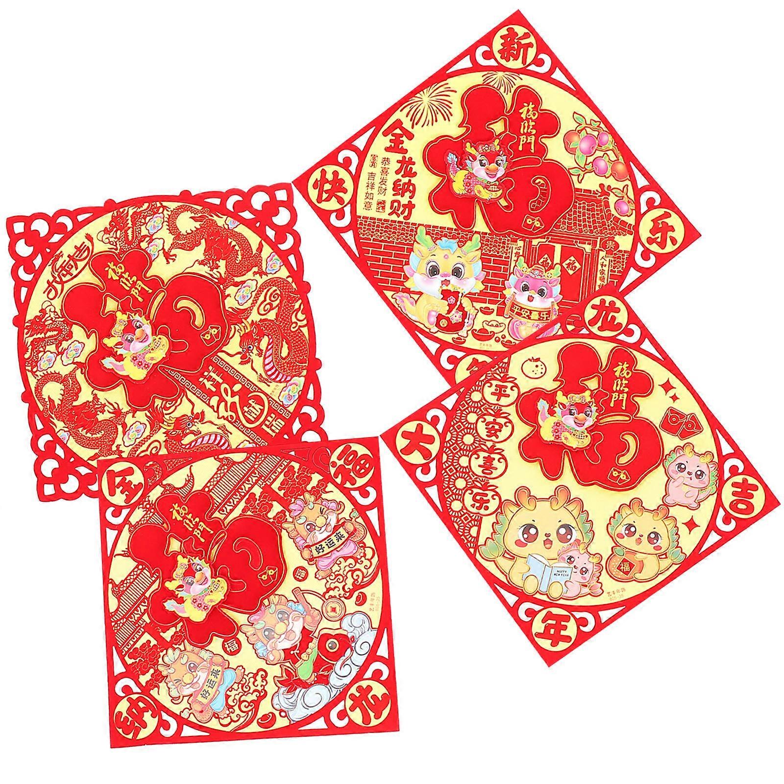 Chinese New Year Decoration Fu Character Door Stickers for Doors and Windows Assorted Color 4Pcs