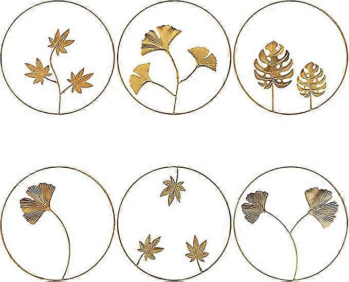 Gold Wall Decor 9.5 Inch Iron Wall Sculptures Gold Leaves With Frame Round Golden Metal Leaf Hanging Decoration