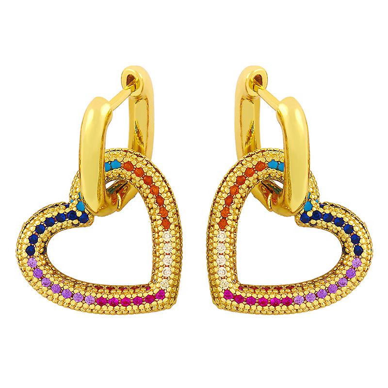 Gold Color Love Heart Drop Earring On Cartilage Luxury Pave Zirconia