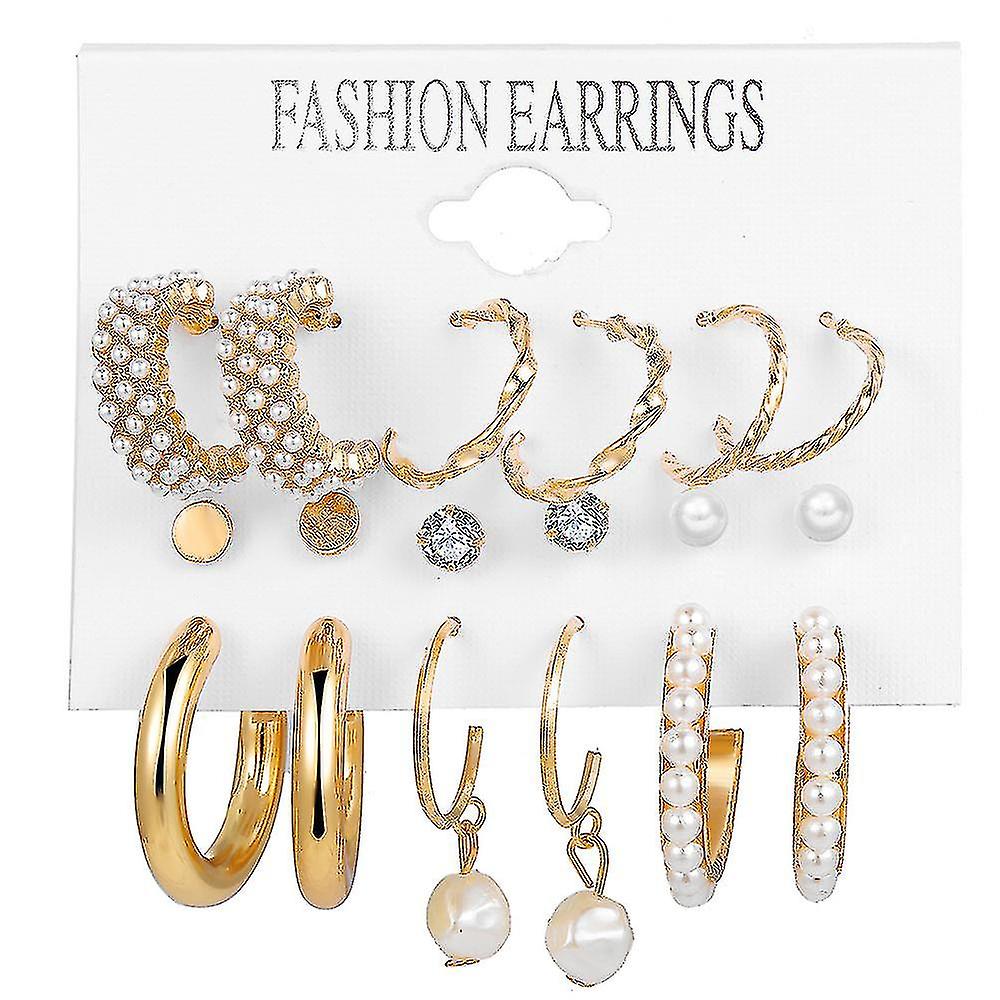 Gold Pearl Earrings Set For Women Vintage Metal Hoop Earings Geometric Circle Drop Earrings Jewelry 3pairs/set