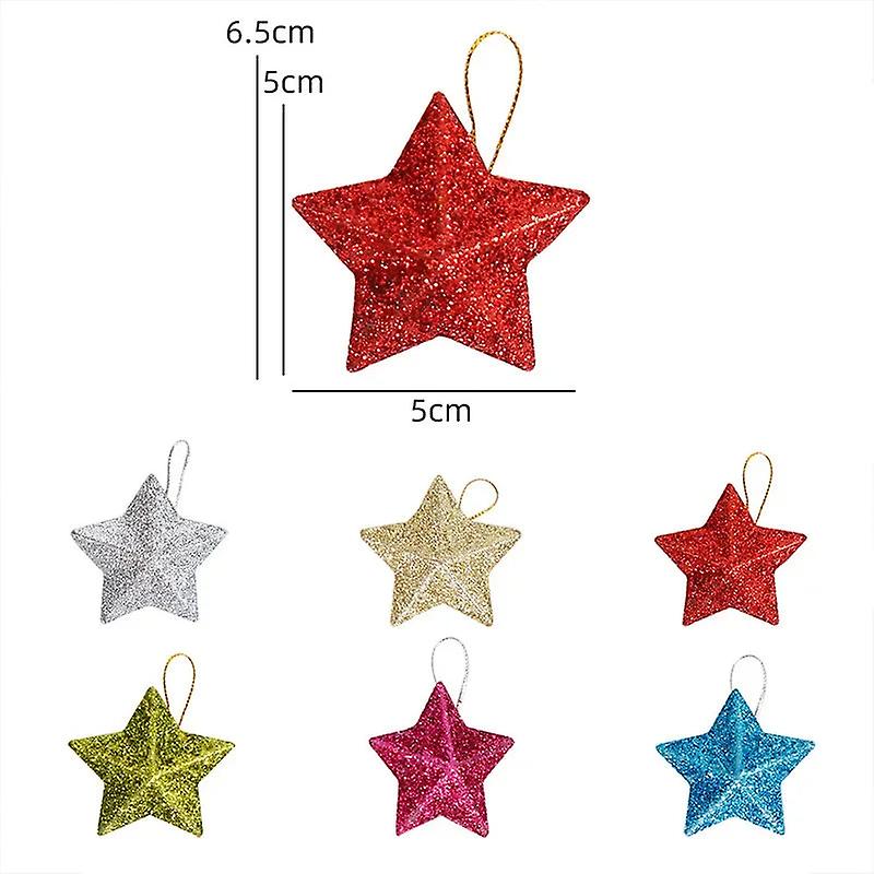 Gold Glitter Star Ornaments Christmas Tree Pendant Plastic Christmas Decorations Festive Embellish Party Navidad Decoration 2024