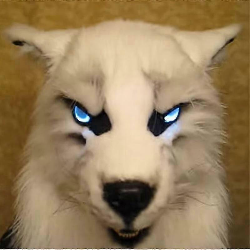Wolf Face Cover Glowing Eyes Movable Ears And Jaws For Halloween Cosplay Party
