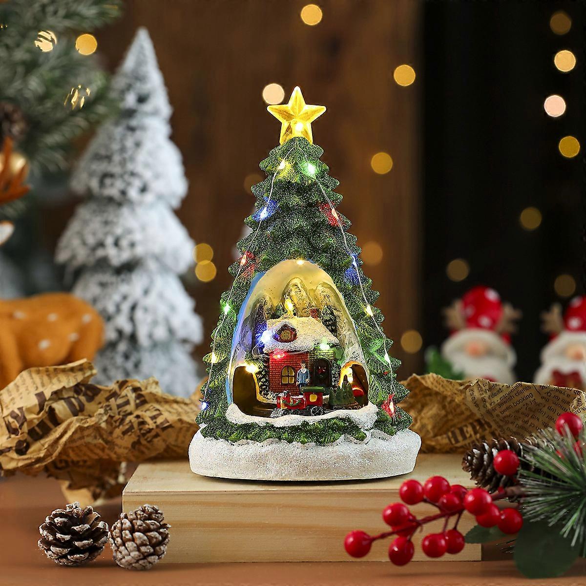 Resin Music Rotating Train LED Music Box Music Box Night Light Christmas Ornaments Gift Decorations