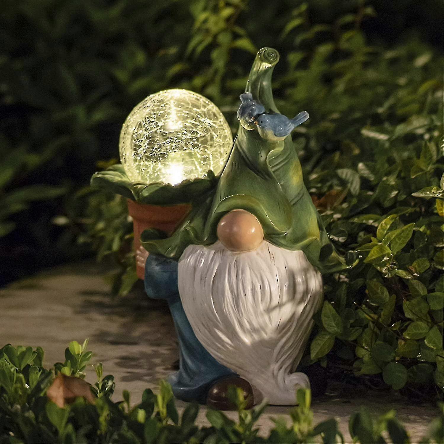Resin Garden Figurine - Christmas Tomte Gnome Long Beard With Crystal Ball With Led Lights Festive Outdoor Decor For Patio Front Yard Garden Gift For