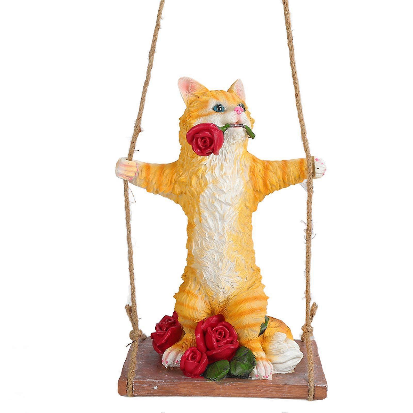 Resin Swinging Cat Simulation Animal Model Figurine Statue Sculpture Crafts Outdoor Garden Decoration