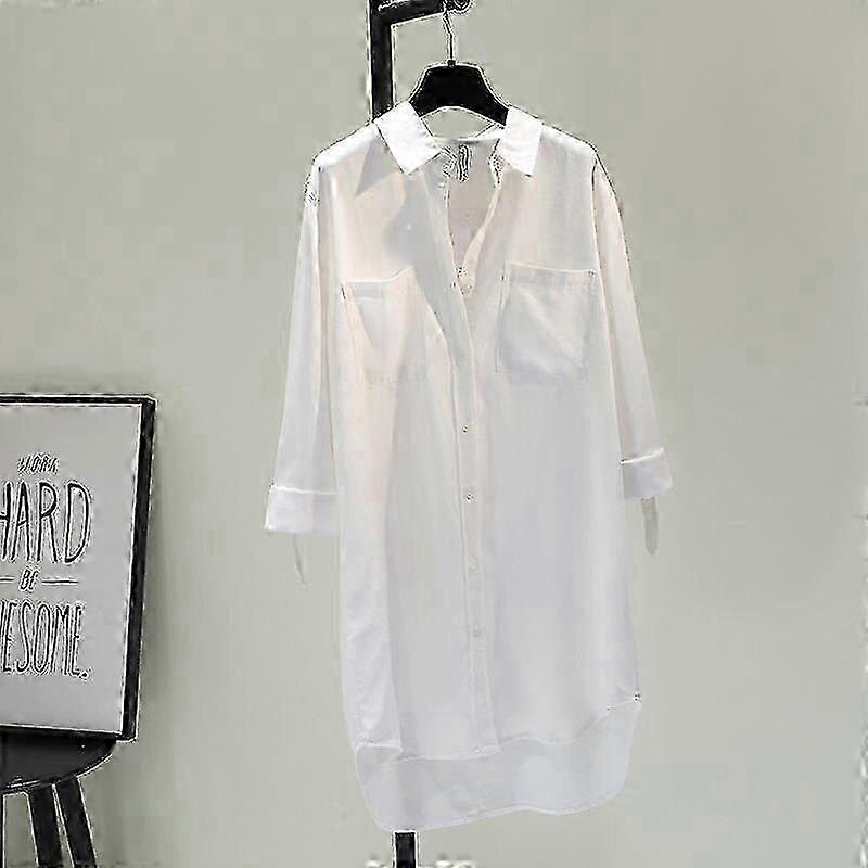 Spring Solid Denim Shirt Dress Casual Tops Fashion Pocket Long Sleeve Shirt For Women Elegant Medium Length Loose Clothes 24120