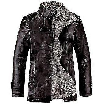 Men Leather Fleece Lined Thick Coat Cowboy Biker Jacket Outerwear