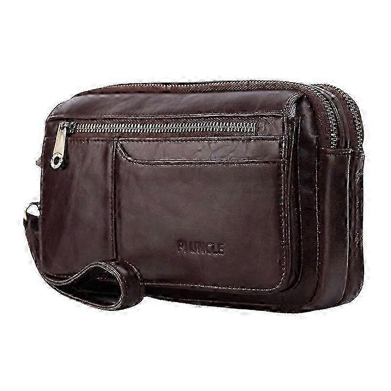 Men Genuine Leather Large Capacity 6.5 Inch Phone Bag Waterproof Double Layer Zipper Pockeet Clutch Bags