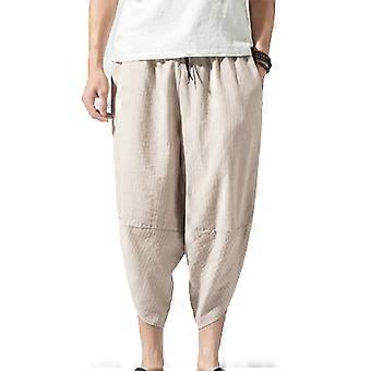 Men Drawstring Ribbed Harem Pants Summer Casual Jogging Loose Capri Trousers