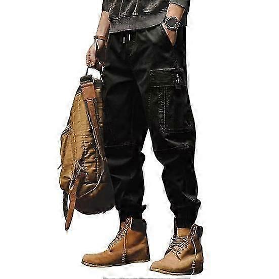 Men Cargo Pants Multi Pockets Drawstring Elastic Waist HIgh Street Hip Hop Ankle-banded Solid Color Ninth Pants Outdoor Long Trousers