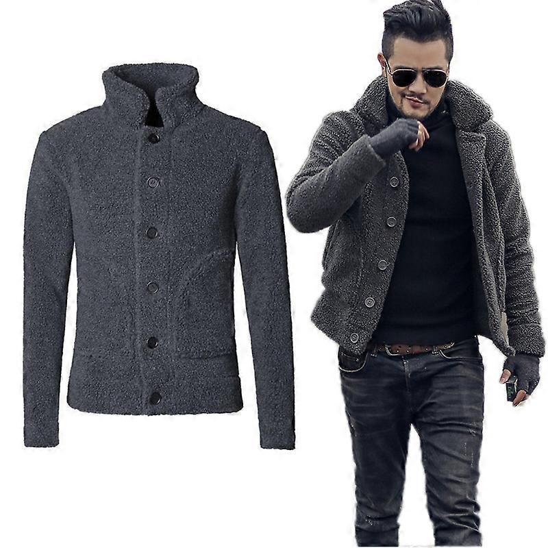 Men Winter Furry Jacket Warm Short Slim Cardigan Casual Thick Coat With Pocket